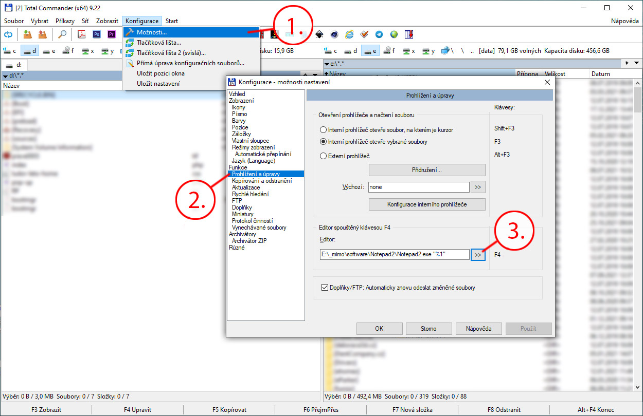 - V Total Comanderu vybereme a klikneme na "Konfigurace › Možnosti"
